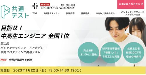 こんにちは。谷口です。このたび、paizaは、株式会社バンタンと協業し、全国の中高生向け無料のプログラミング統一Webテスト「第二回 P共通テスト」をスタートいたします。ただいま、2023年1月22日(日)開催のテストに向けて、受検希望者を受付中です! 中高…