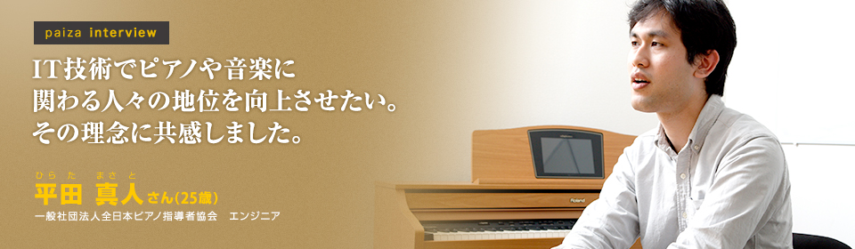 さまざまなイベントやサービスを通じ、ピアノ指導者の資質向上を目指す一般社団法人全日本ピアノ指導者協会で、paiza新卒を通じて就職された平田さんと、本部事務局ITマネージャー野口さんにお話を伺いました。