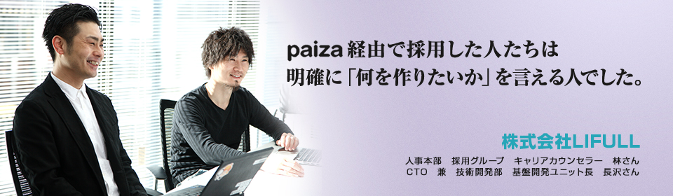 「LIFULL HOME’S」 でおなじみの株式会社LIFULLで、人事本部採用グループ・キャリアカウンセラーの林さん、CTO兼技術開発部基盤開発ユニット長の長沢さんにお話を伺いました。