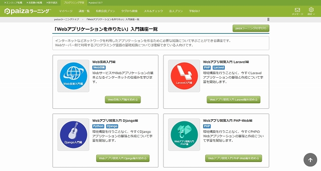 そこで、paizaラーニングを利用していただくと環境構築不要で、Python・Ruby・PHP・Java・C#などの「プログラミング言語入門」講座や人気のフレームワークDjangoやLaravelを使った「Webアプリ開発入門」講座、情報技術者試験の対策にもなる「情報処理入門 マネジメント編」講座などをブラウザでご利用いただけます。