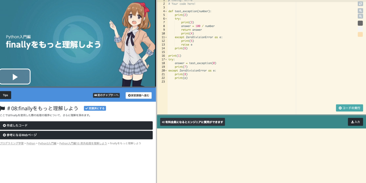 なにはともあれ、Pythonをある程度使いこなせなければスタートラインに立てませんので、まずは勉強です。「Pythonエンジニアになりたいけど、まだ自分のプログラミングスキルに自信がない……」という人は、プログラミング学習サービスでPythonの基礎を習得しましょう。