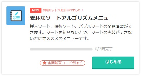 すべての問題が解けたらぜひ「素朴なソートアルゴリズムメニュー」にも挑戦してみてください。