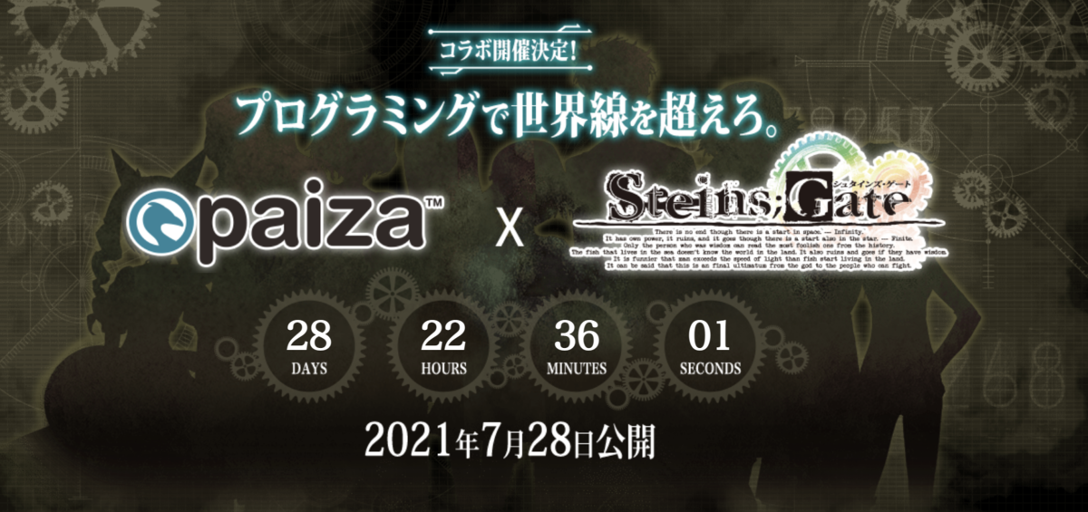 このたび、不朽の名作「STEINS;GATE」とpaizaのコラボが開催決定しました。