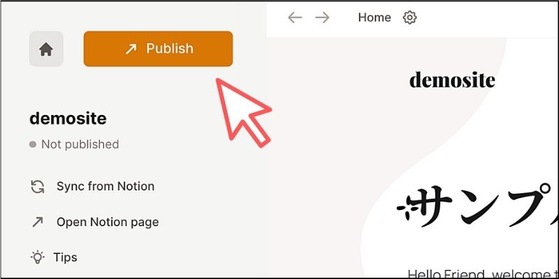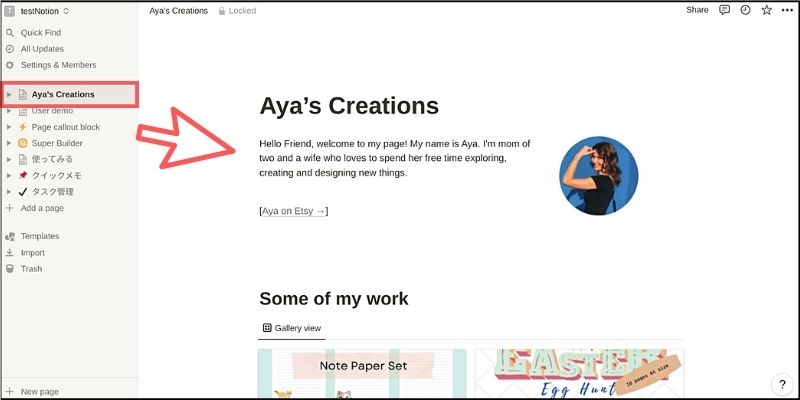 NotionドキュメントがWebサイトとして公開されたのが分かります!