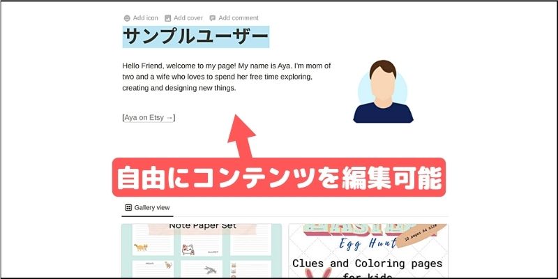 テキストや画像などを変更しながら、自分好みのページに編集してみてください。