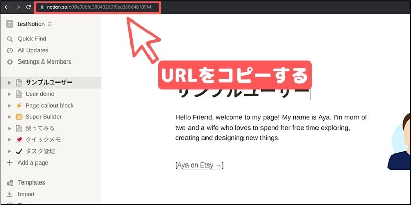 画面上部の【複製】をクリックして、このページを自分のNotionにコピーします。
