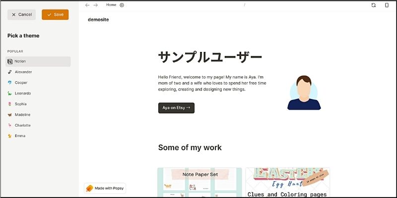「Popsy」が提供するNotionドキュメントが表示されました。