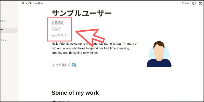 作り方は簡単で、Notionドキュメントの冒頭部分にメニューとして表示させたいリンクを追加するだけです。
