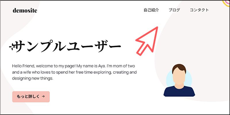 今回の例では、「自己紹介」「ブログ」「コンタクト」という3つのメニューを作りました。