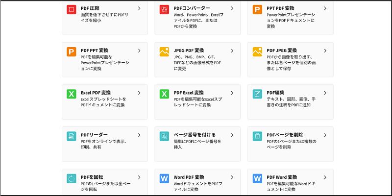 圧縮、注釈の挿入、分割・結合、暗号化といった基本的な機能はだいたい網羅されています。他にも、署名の作成、WordやExcelとの相互変換、画像ファイルなどへの変換も提供されているので、さまざまなシーンに活用できるでしょう。