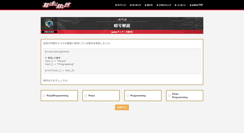 ※本ゲームのプレイには、paizaへの無料会員登録が必要です。paizaはプログラミング学習コンテンツ提供のほか、ITエンジニア向け就職・転職サービスも運営しています。