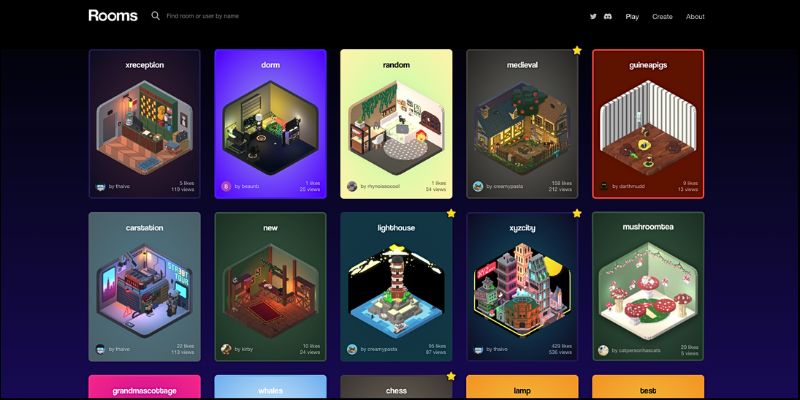 他のユーザーがどんな部屋を作成しているのか少し見てみましょう。
