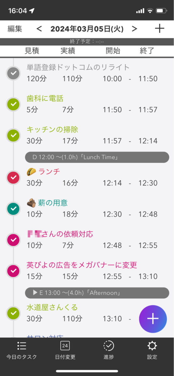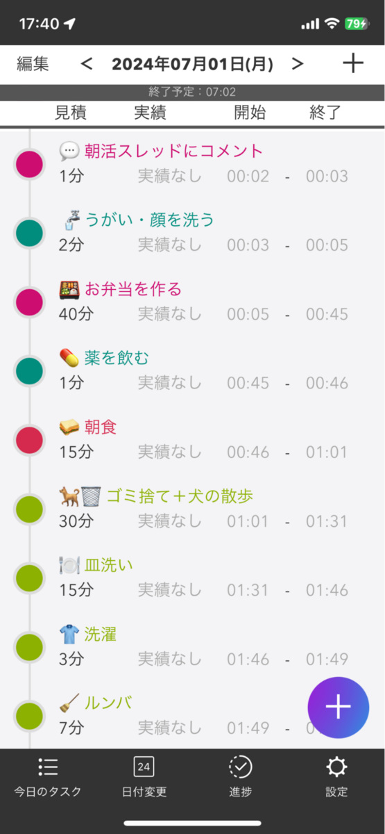 まだその日の予定を入れていなくても、上の画像のように「ルーチンとして登録しているタスク」が最初から表示されます。