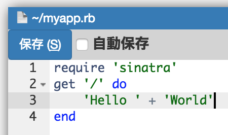 ここでは、"myapp.rb"という名前のファイルを作成します。